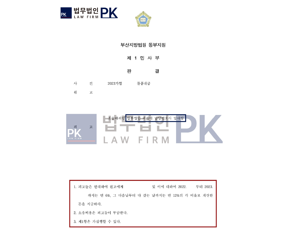 물품대금 전부 승소