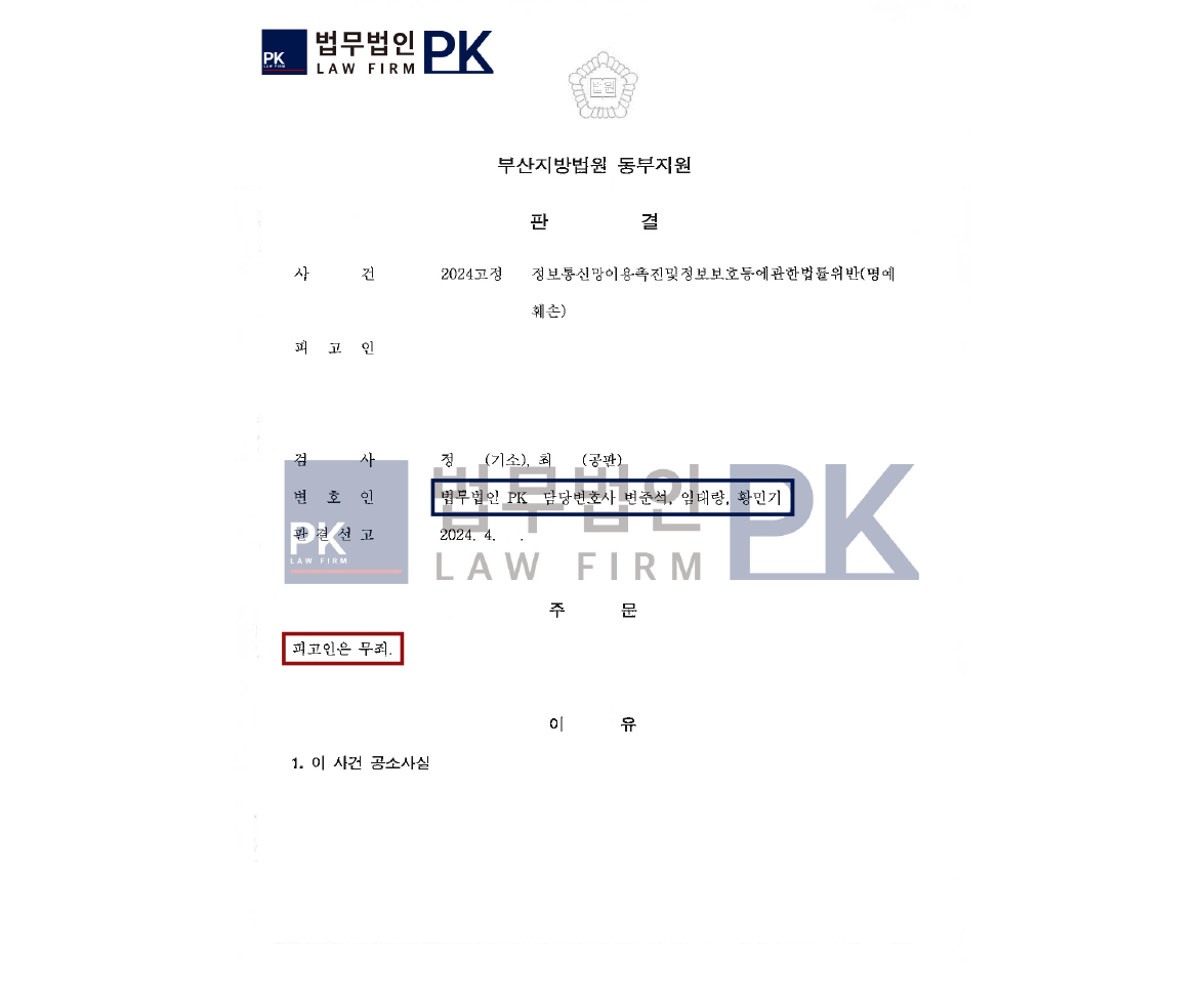 정보통신망법위반(명예훼손)에 대한 재판을 받았으나 무죄판결을 이끌어낸 사례
