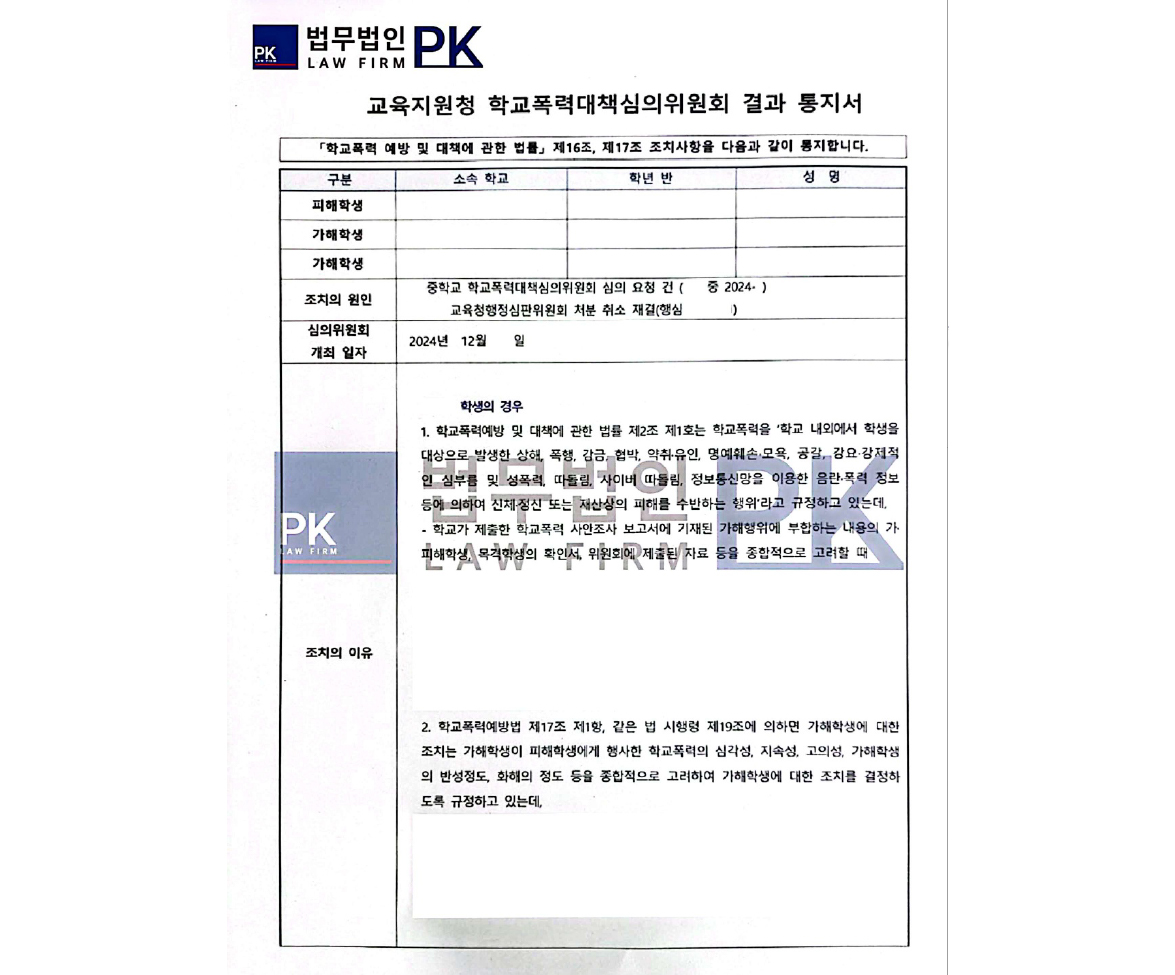 학교 내 폭력 사건에서 고소대리 성공 및 가해자 처벌 이끌어낸 사례