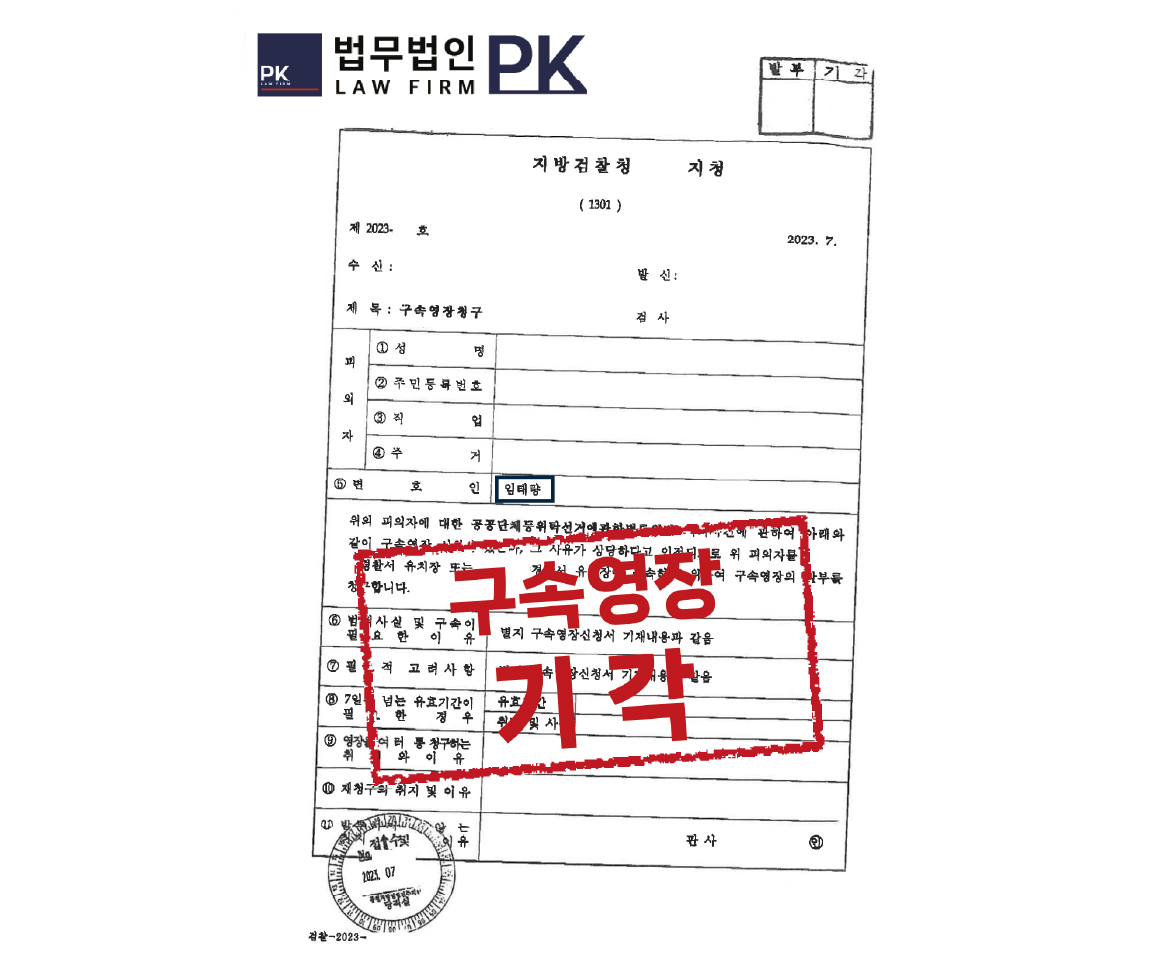 공공단체 등 위탁선거에 관한 법률위반 혐의로 구속영장이 청구되었으나, 기각을 이끌어낸 사례